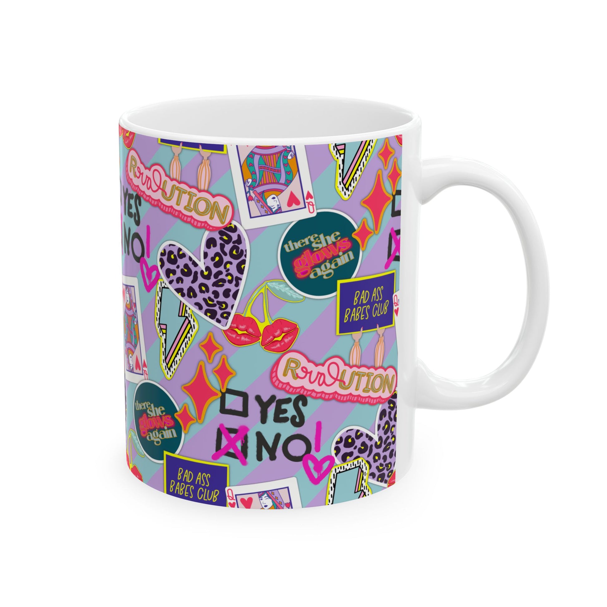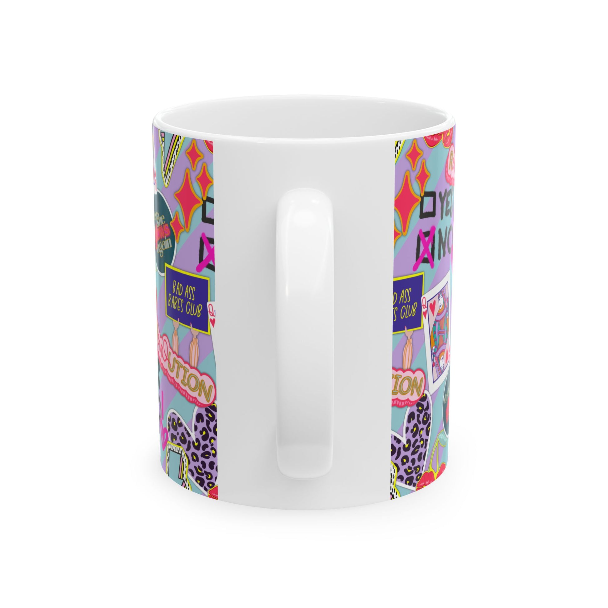 Crafted from durable white ceramic, this 11oz mug is the ideal size for all your favorite hot beverages. The comfortable C-handle and glossy finish make it both easy to hold and visually striking, adding a touch of empowerment to your drinkware collection. Plus, it’s BPA and Lead-free, microwave and dishwasher-safe, ensuring it's as practical as it is inspiring.
