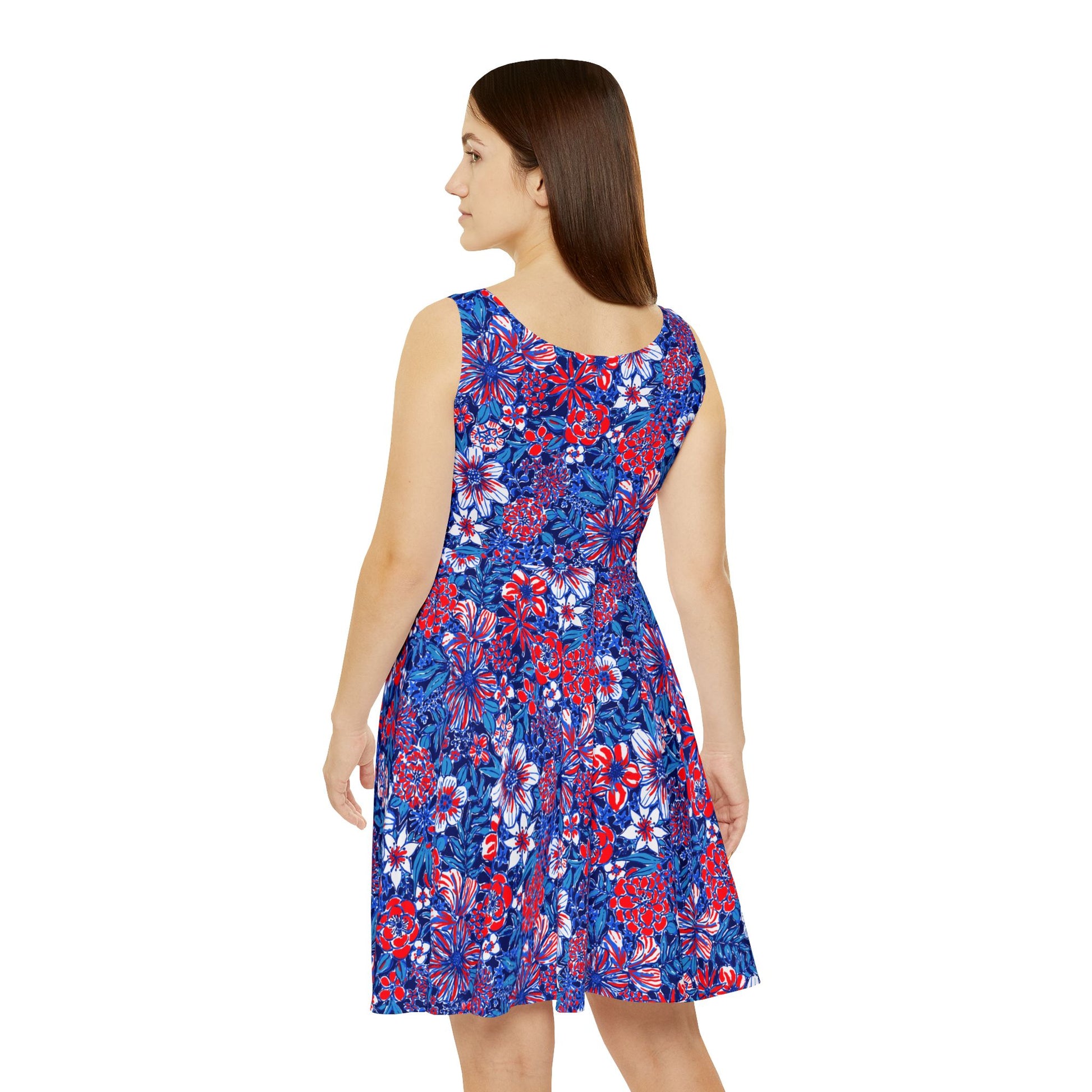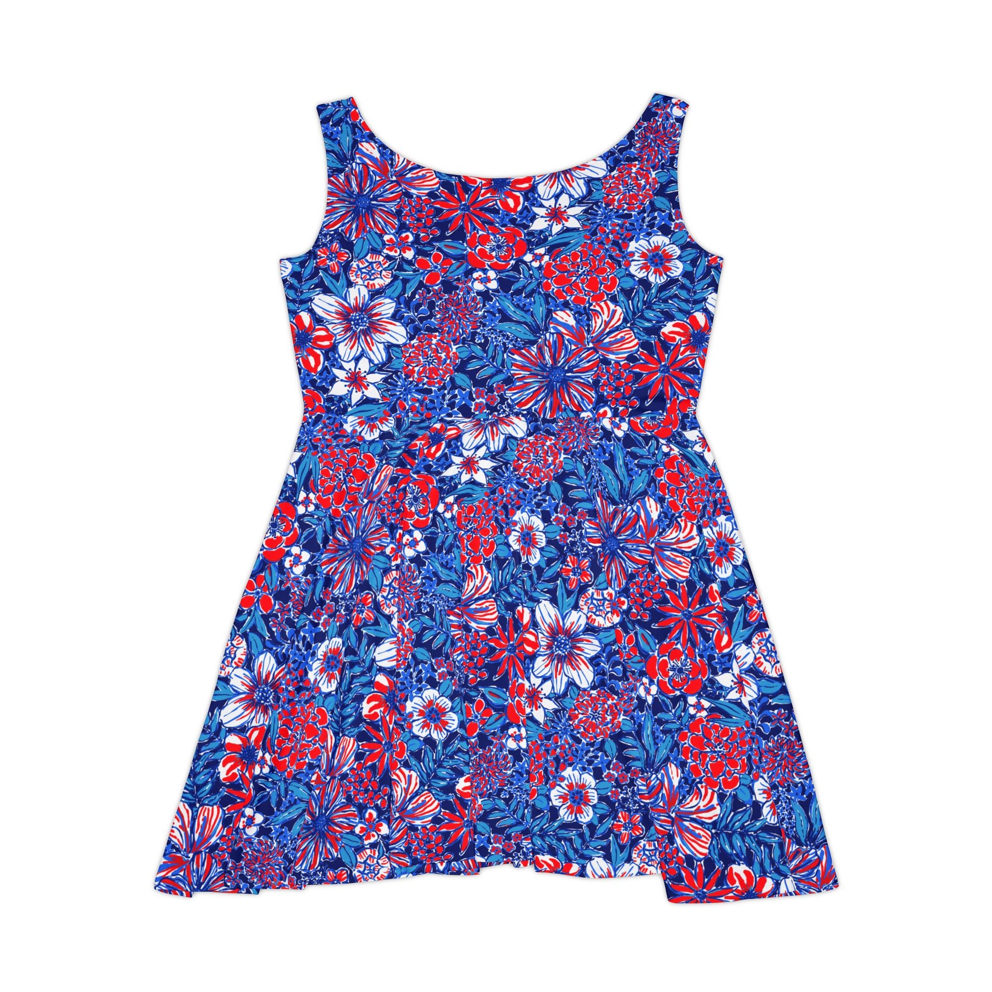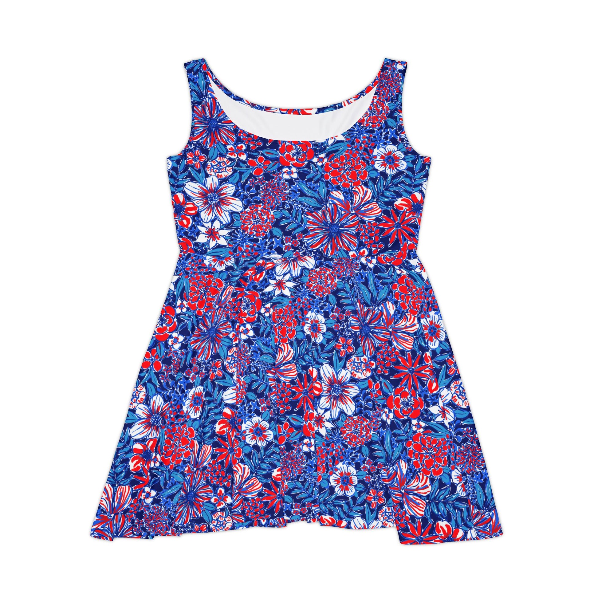 Bring a bold, patriotic vibe to your wardrobe with this USA-inspired skater dress. Whether you're hitting the town or lounging in style, this skater dress combines comfort and flair. Crafted from a high-quality 290gsm fabric blend of 83% polyester and 17% spandex, it's both stretchy and soft, making it perfect for any occasion. Featuring vibrant USA flag motifs in an all-over print, this mid-length dress is a standout piece for celebrations like the 4th of July or Labor Day, or simply for expressing your love for the red, white, and blue all summer long.