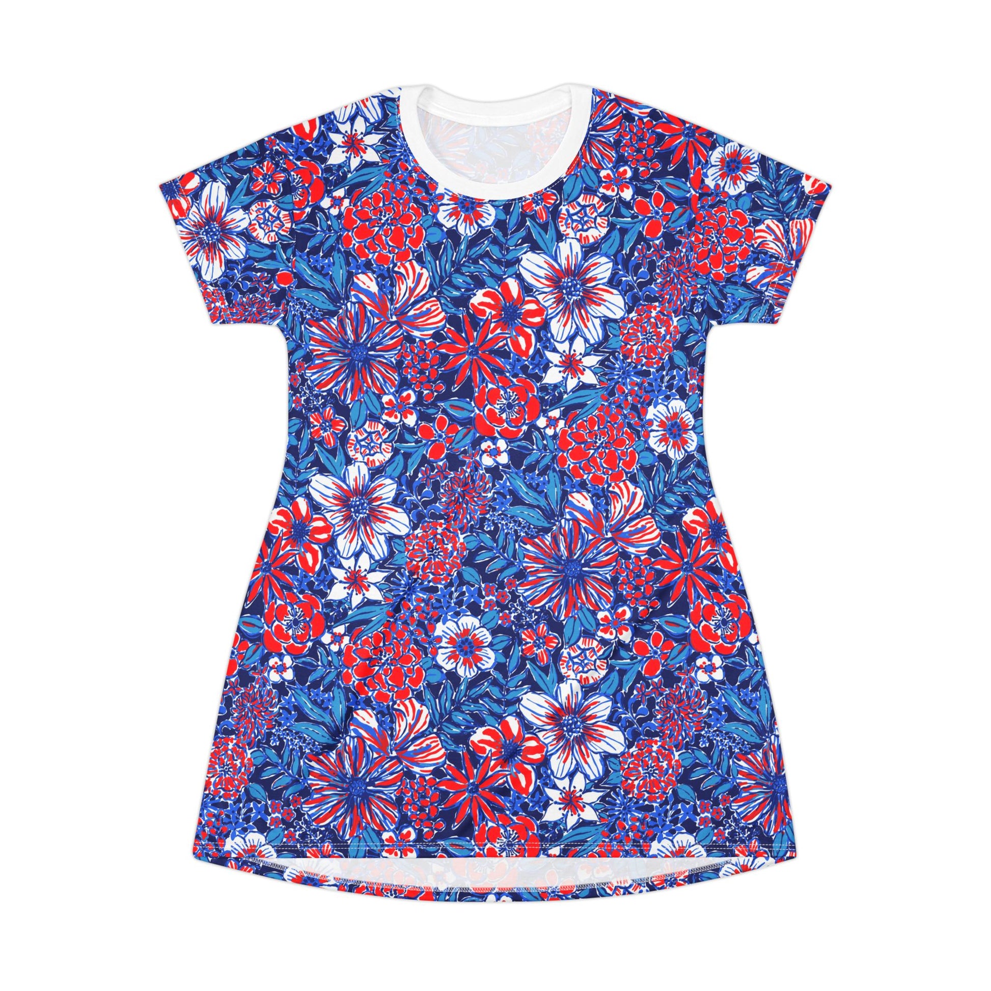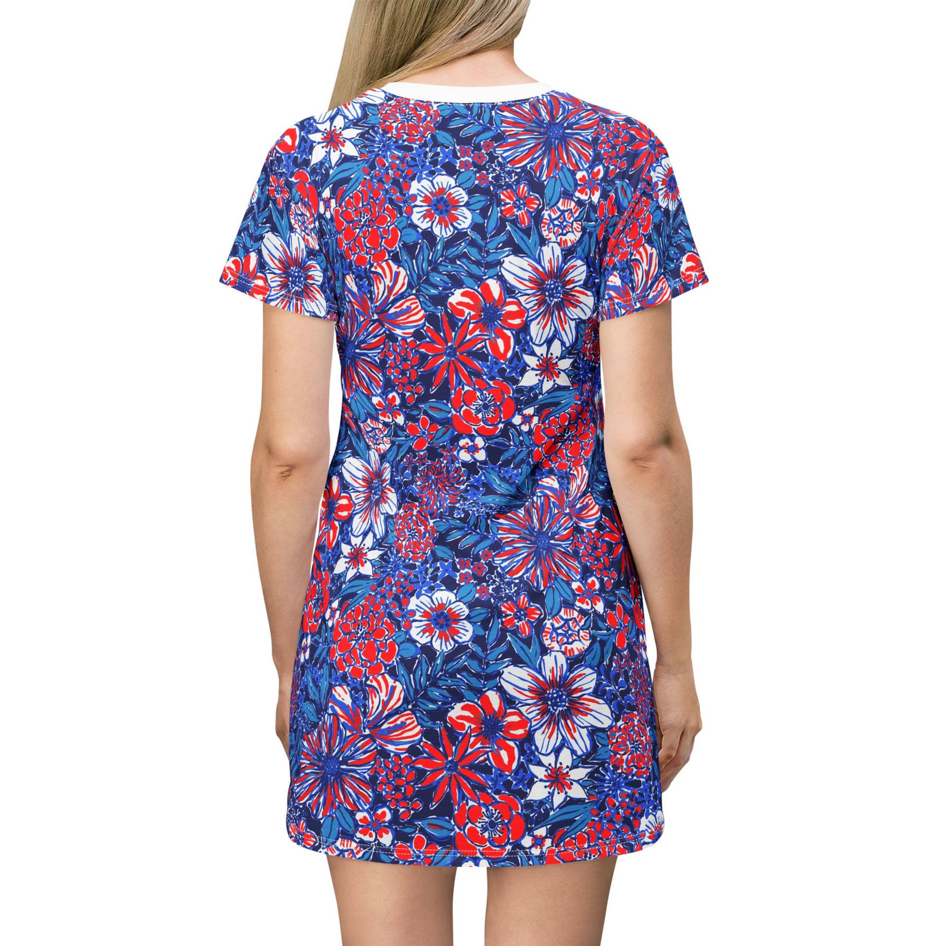 Discover the ultimate statement piece: our All-Over-Print T-Shirt Dress with bold USA designs! This dress is more than just an outfit- it's a vibe, a stylish adventure that lets you express yourself with total freedom. Whether you're strolling the city streets or making a splash at your next party, this t-shirt dress perfectly combines comfort and cool.
