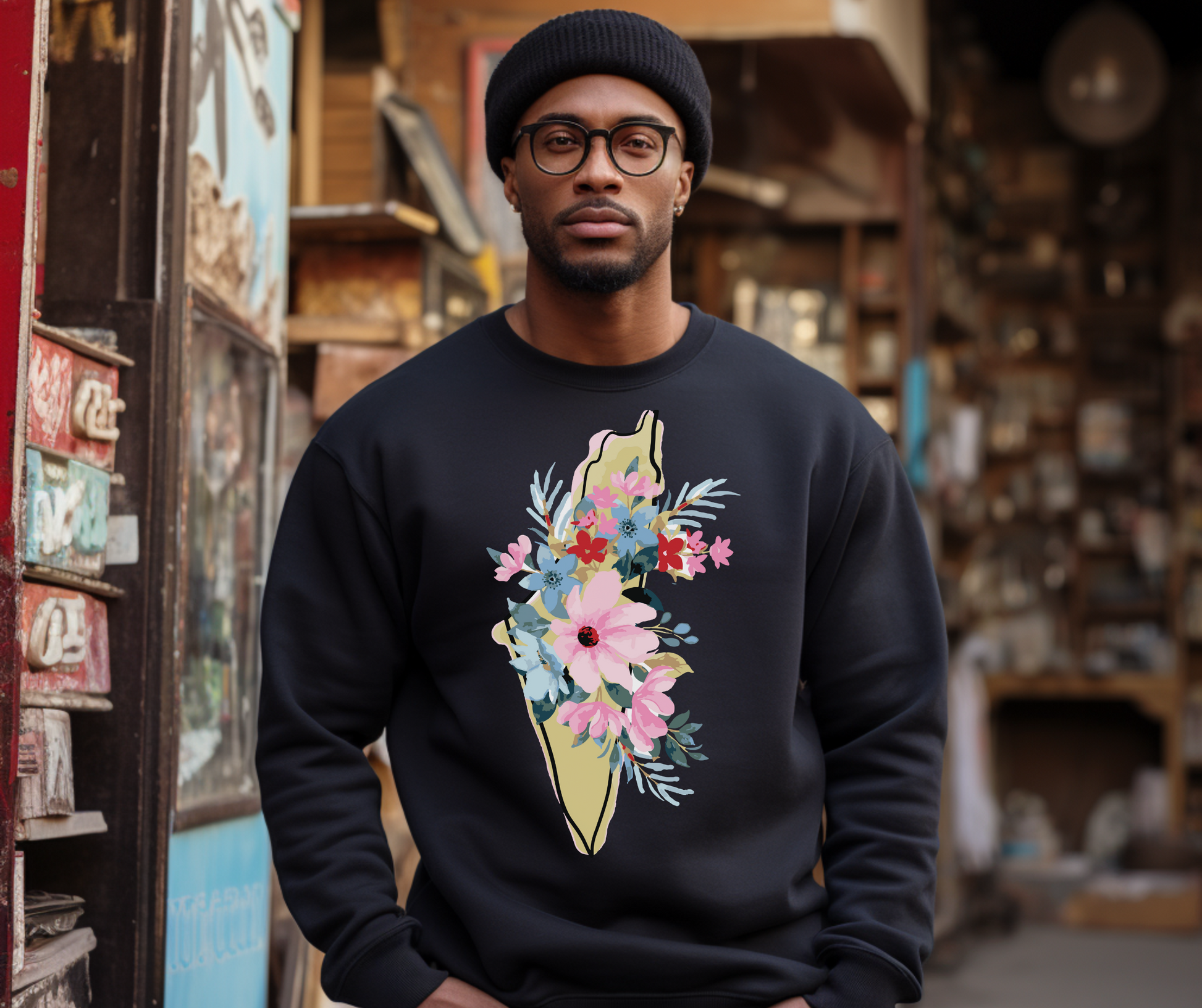 Support for Palestine! This Sweatshirt goes beyond being just an item of clothing - it's a potent symbol, forging a connection to a resilient culture and an enduring struggle for peace. Its distinctive design, emblematic of Palestine, serves not only as a fashion statement but as a profound expression of solidarity and commitment.