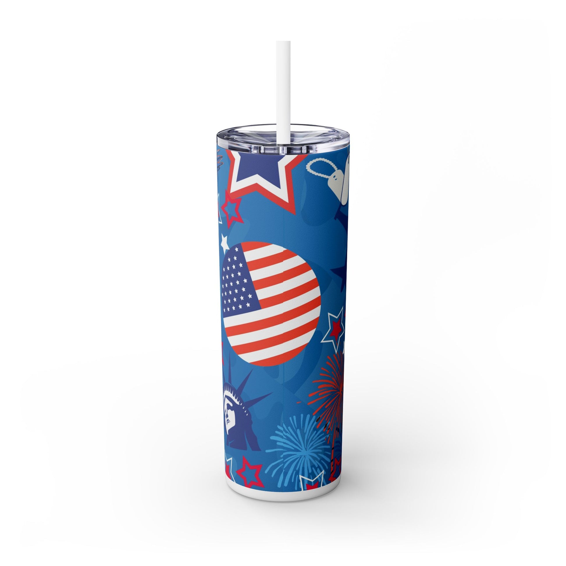 Crafted with high-quality stainless steel and finished in your choice of matte or glossy, the All-American Pride Skinny Tumbler is both practical and chic. Its slim, tapered design makes it easy to carry, while the BPA-free, non-toxic components ensure safety for the whole family. The tumbler comes with a plastic press-on lid and a color-matching straw for spill-free sipping on the go.