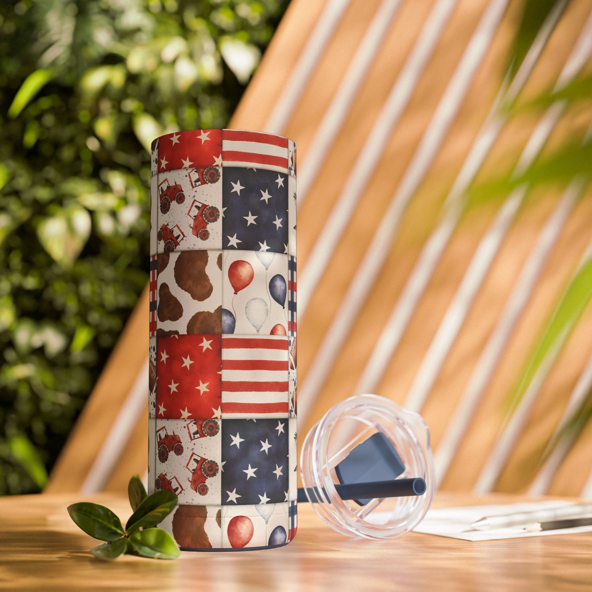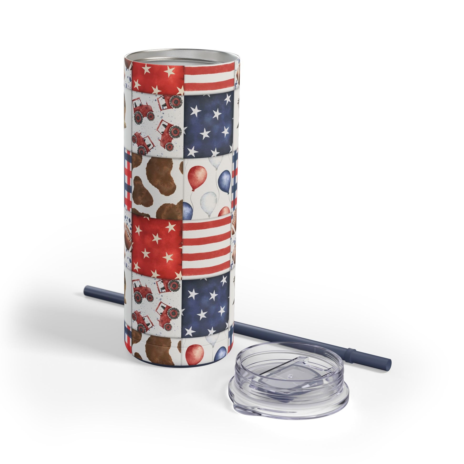 Patriot Patchwork Skinny Tumbler with screw-on slide