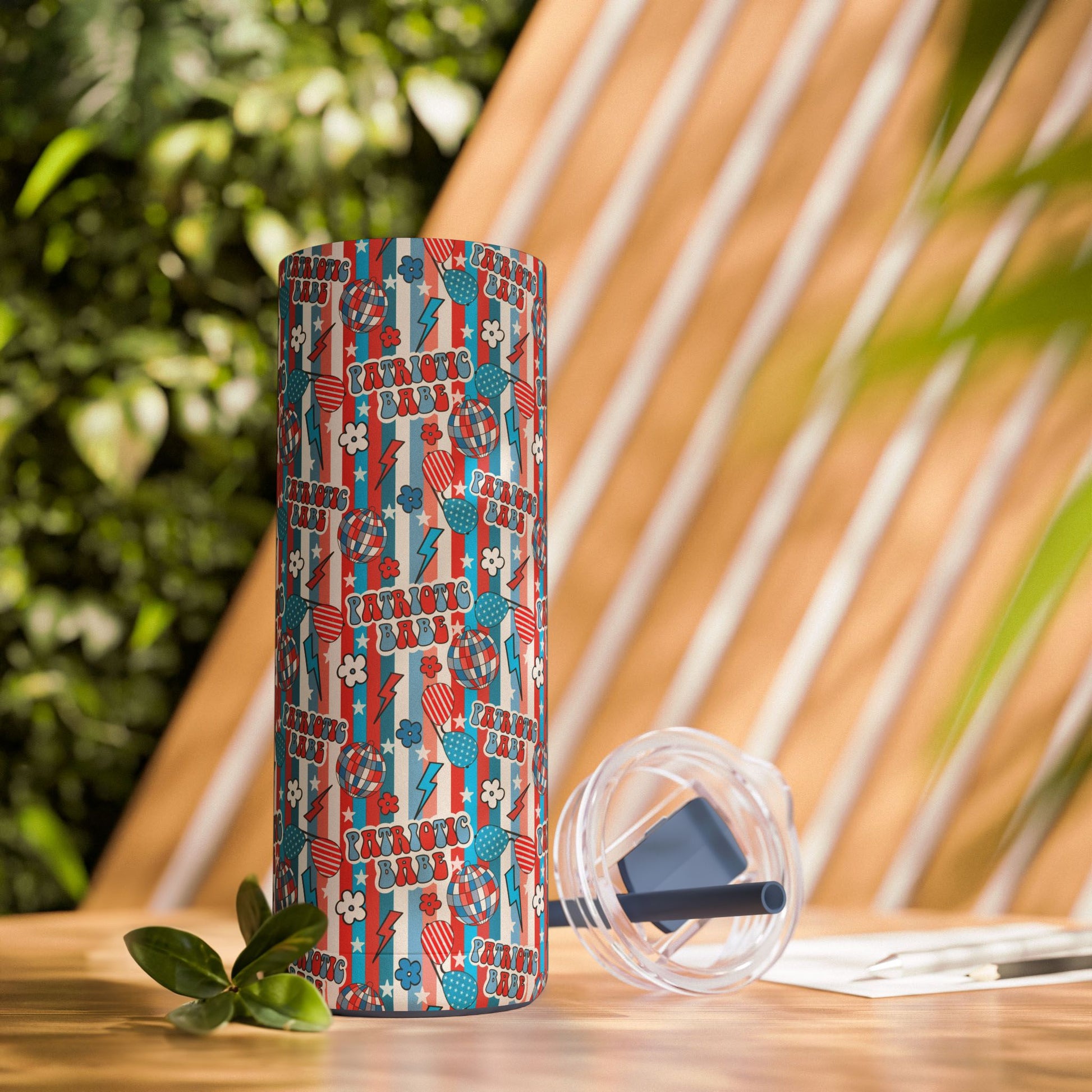Constructed with premium double-wall, food-grade 18/8 stainless steel, the All-American Spirit Skinny Tumbler combines durability with style. The smooth matte finish adds a sleek, modern look, while the non-tapered, slim design ensures effortless portability. With its practical plastic screw-on slide lid and color-matching straw, this tumbler is built for convenience and spill-free sipping. Plus, all materials are BPA-free and non-toxic, making it a safe choice for the whole family.