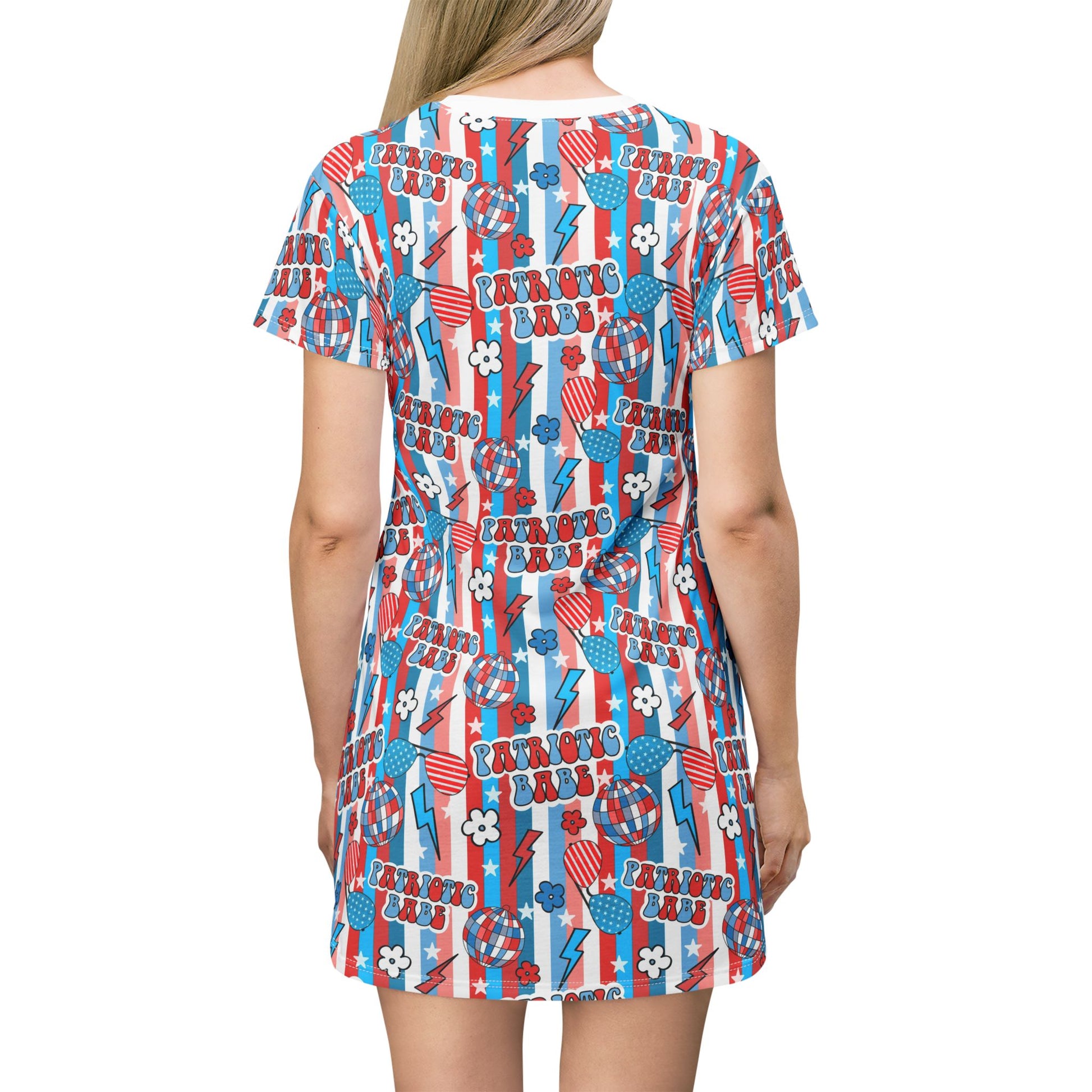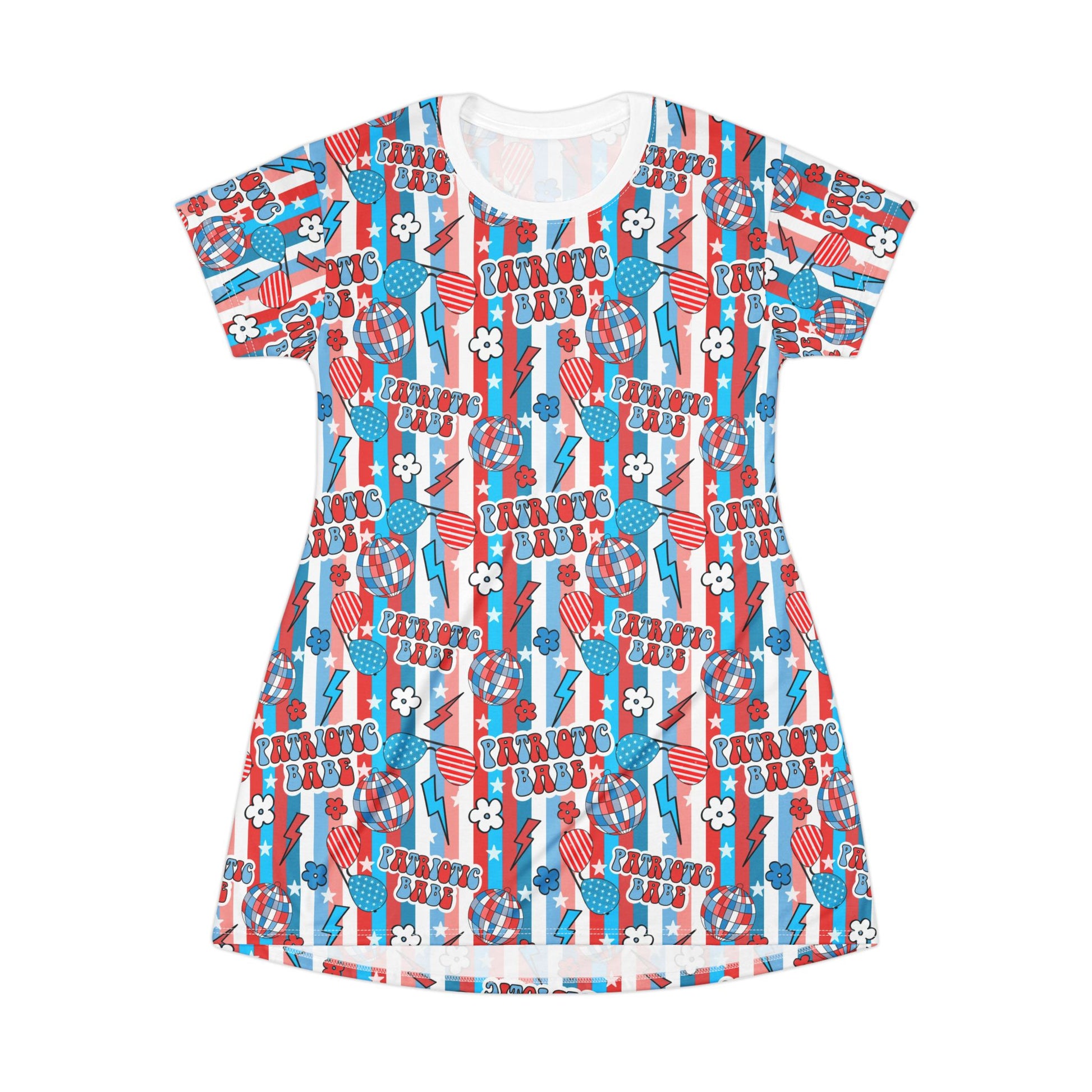 Discover the ultimate statement piece: our All-Over-Print T-Shirt Dress with bold USA designs! This dress is more than just an outfit- it's a vibe, a stylish adventure that lets you express yourself with total freedom. Whether you're strolling the city streets or making a splash at your next party, this t-shirt dress perfectly combines comfort and cool.