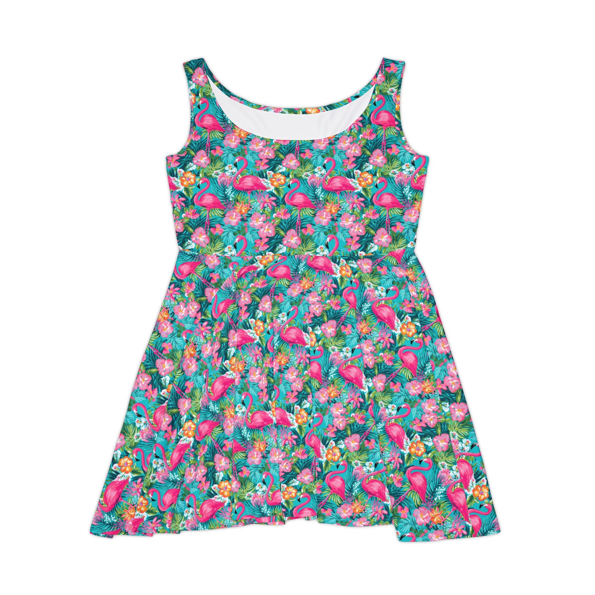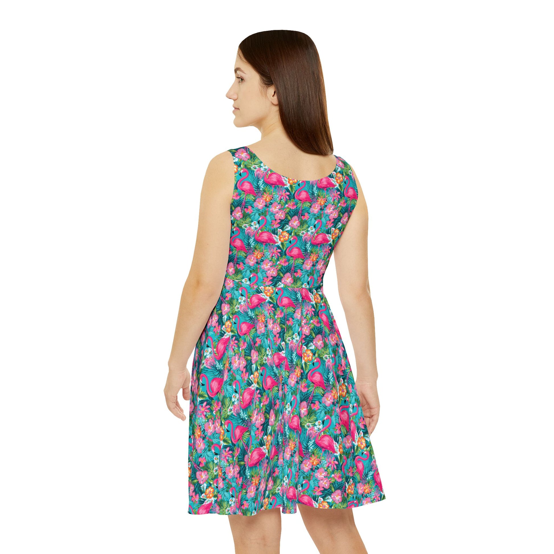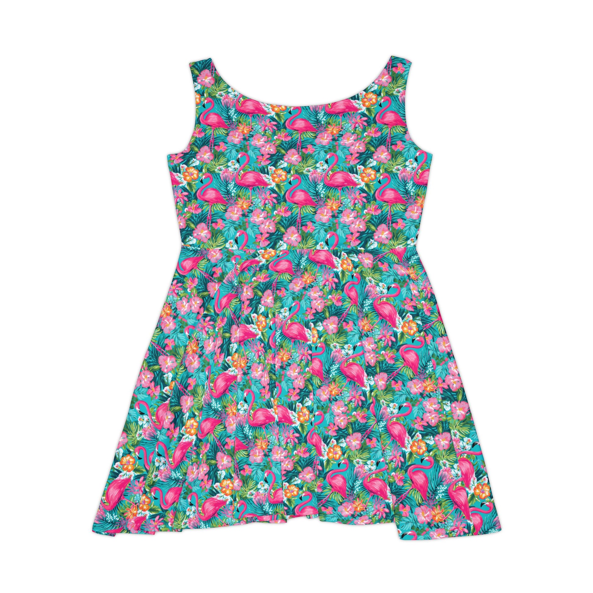 Add a splash of sunshine to your wardrobe with this Florida-inspired skater dress. Whether you're strolling along the beach or exploring the city, this dress blends style and comfort effortlessly. Crafted from a premium 290gsm fabric blend of 83% polyester and 17% spandex, it’s soft, stretchy, and perfect for any occasion. Featuring vibrant Florida motifs-like tropical palm trees, sunset hues, and beach vibes- in an all-over print, this mid-length dress is your go-to for a relaxed yet fashionable look. Ideal for summer outings or bringing that tropical Florida feel wherever you go.
