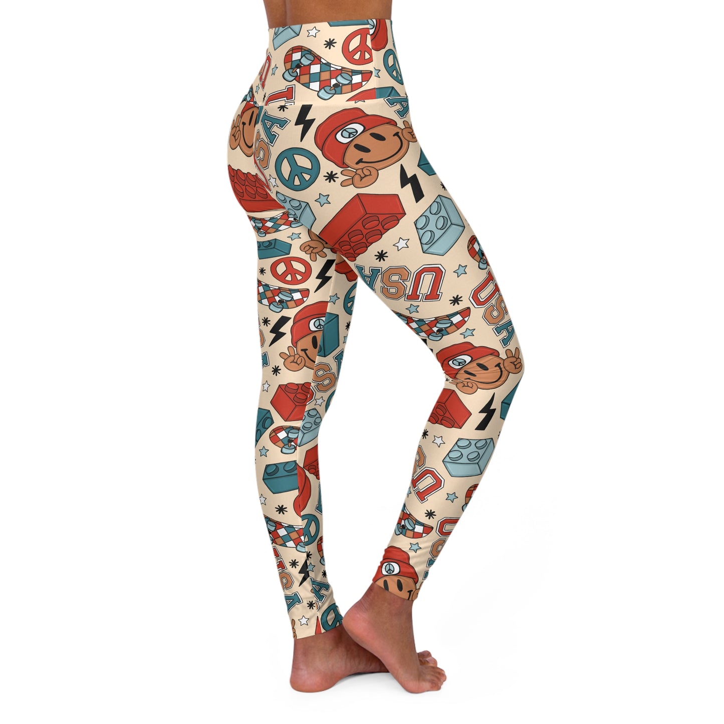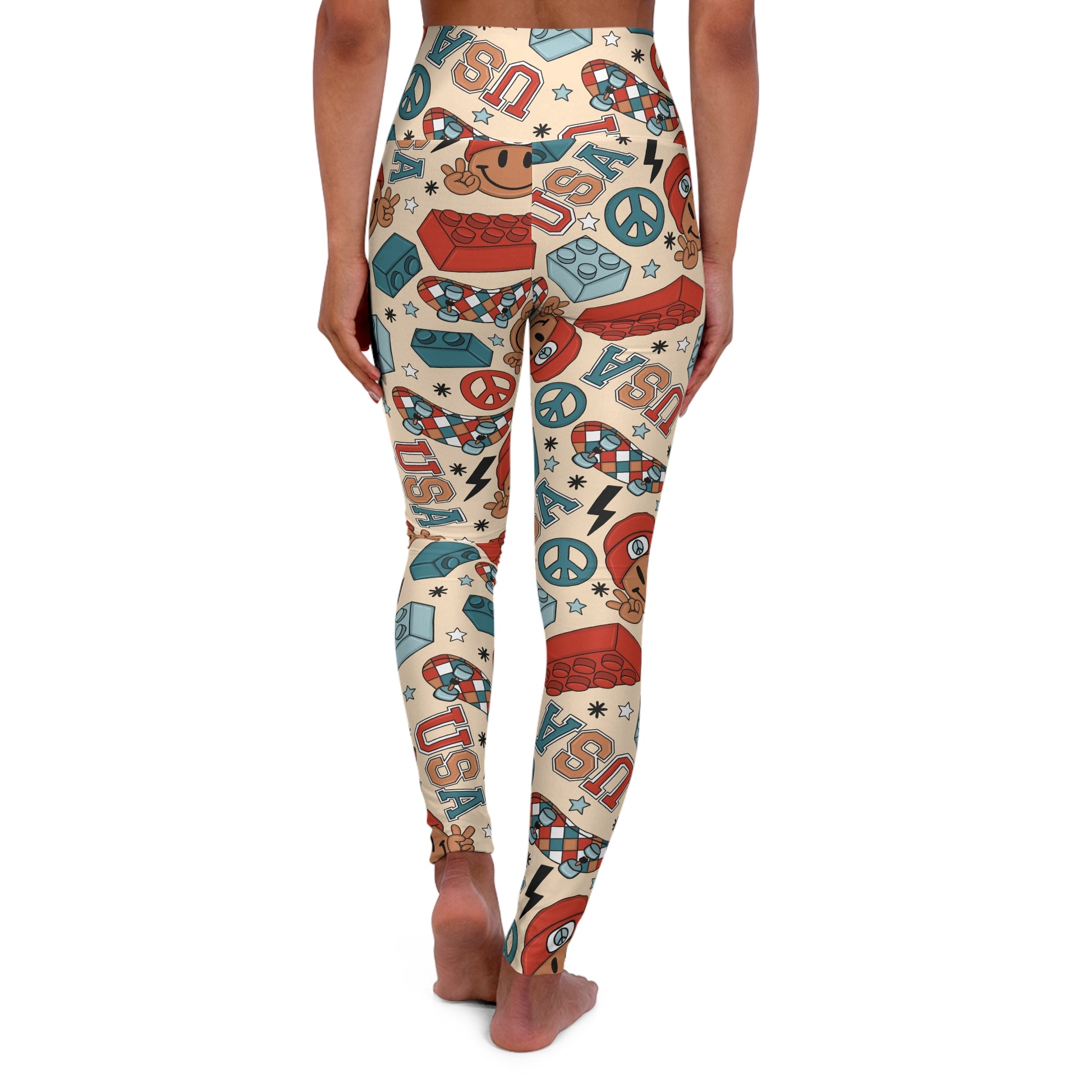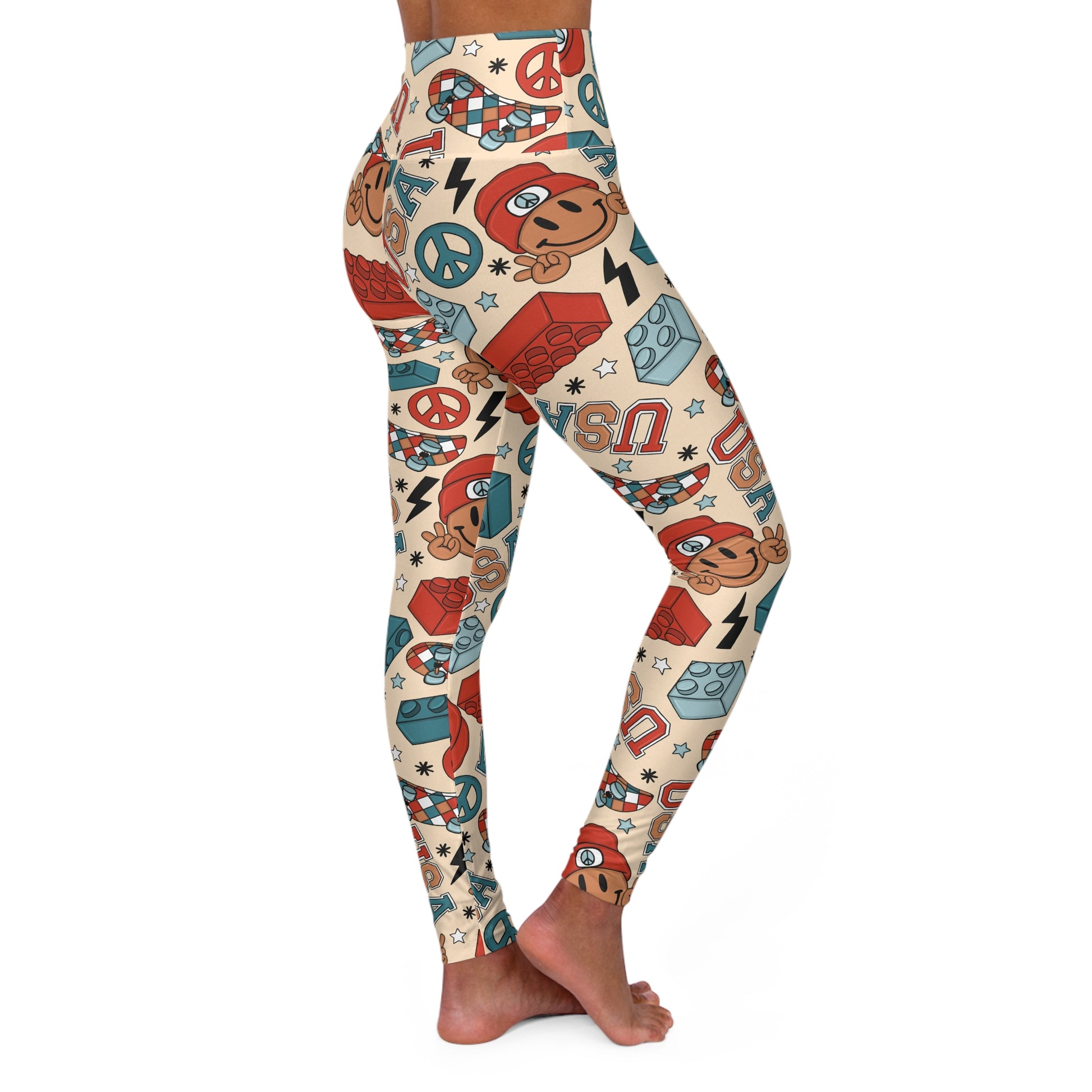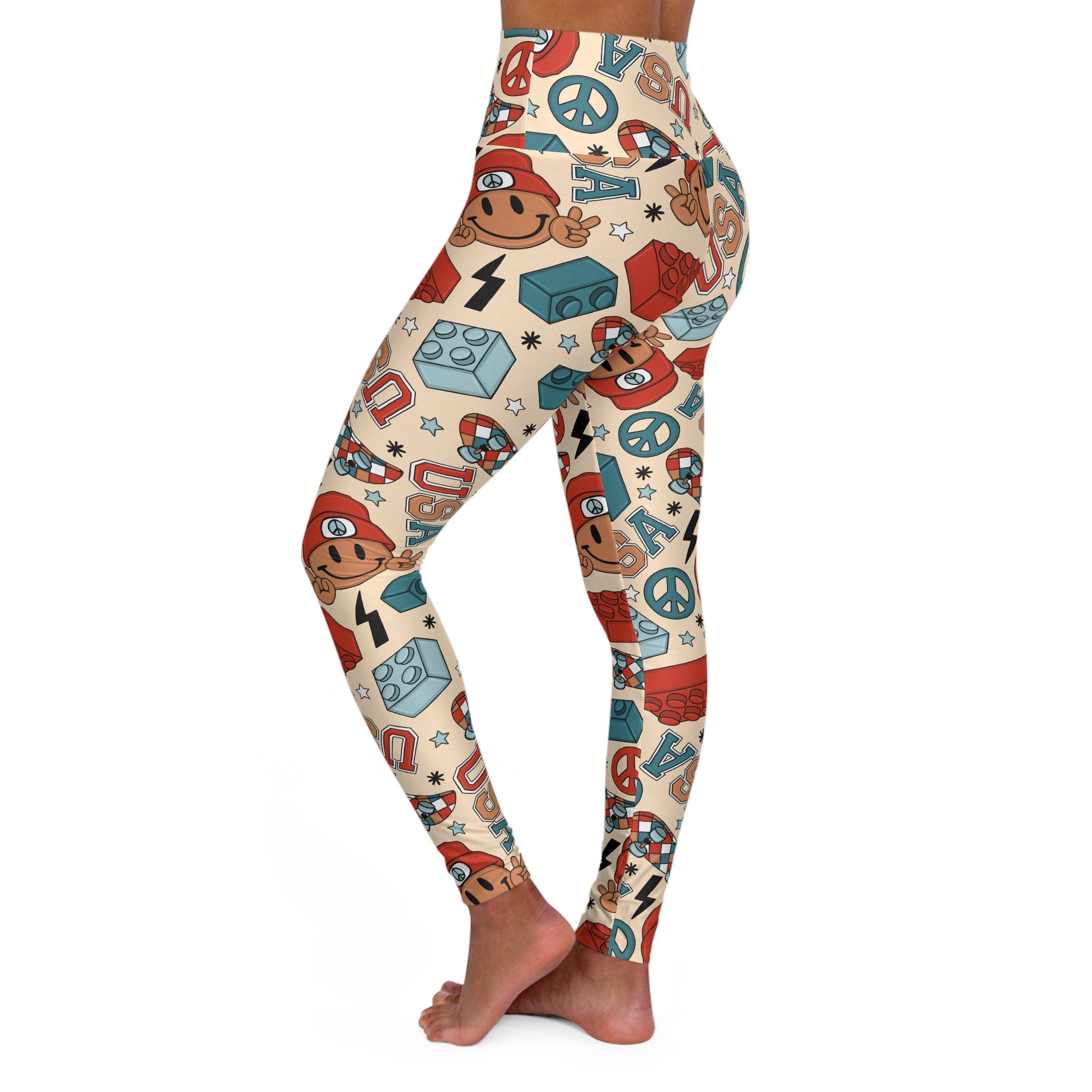 Step into your power with our high-waisted yoga leggings in a bold USA design - the perfect combination of comfort, style, and patriotism. These leggings are crafted to move with you, whether you're smashing your workout goals, running errands, or simply embracing your everyday athleisure look. With an eye-catching, all-over print that celebrates American pride, you'll feel unstoppable wherever you go.