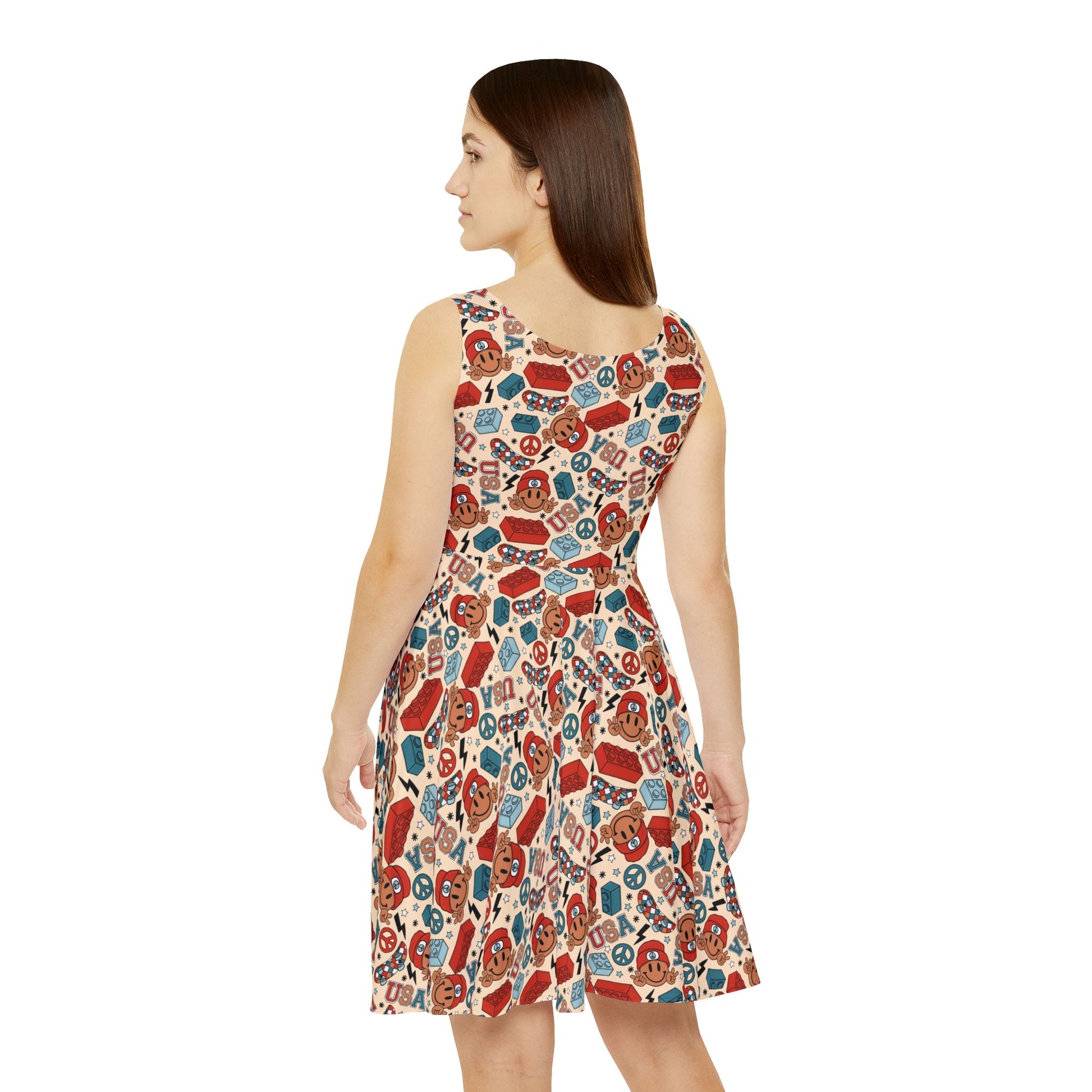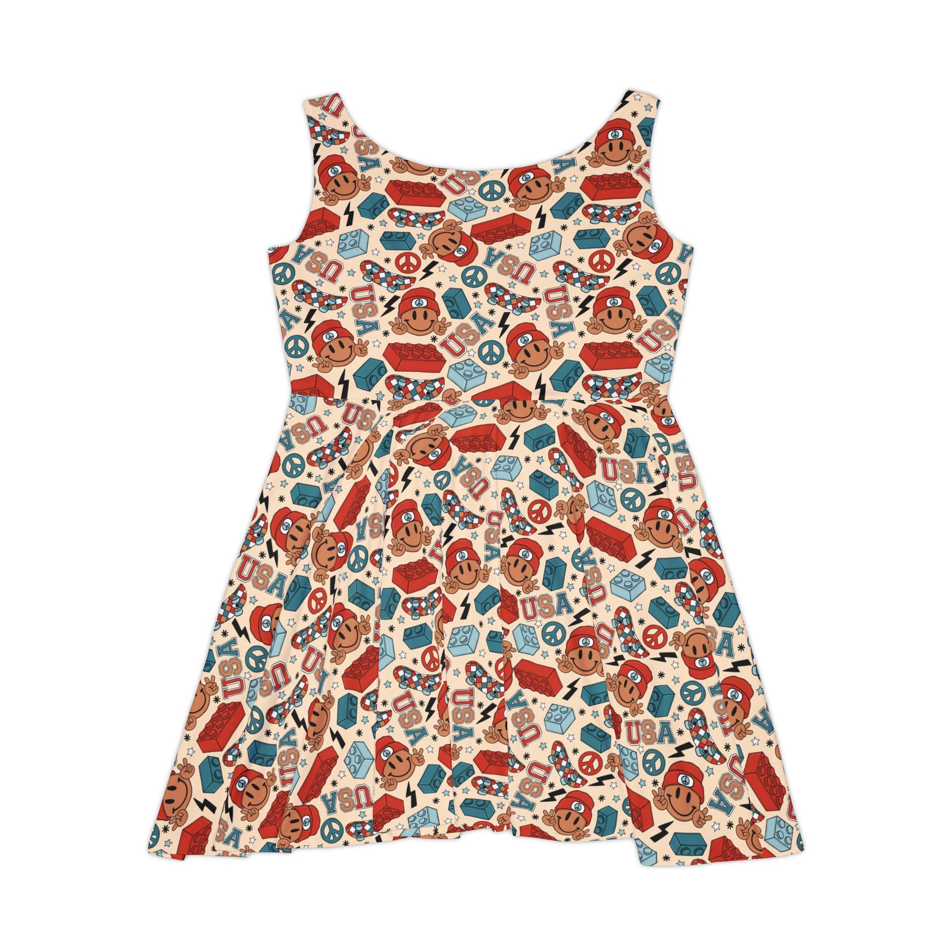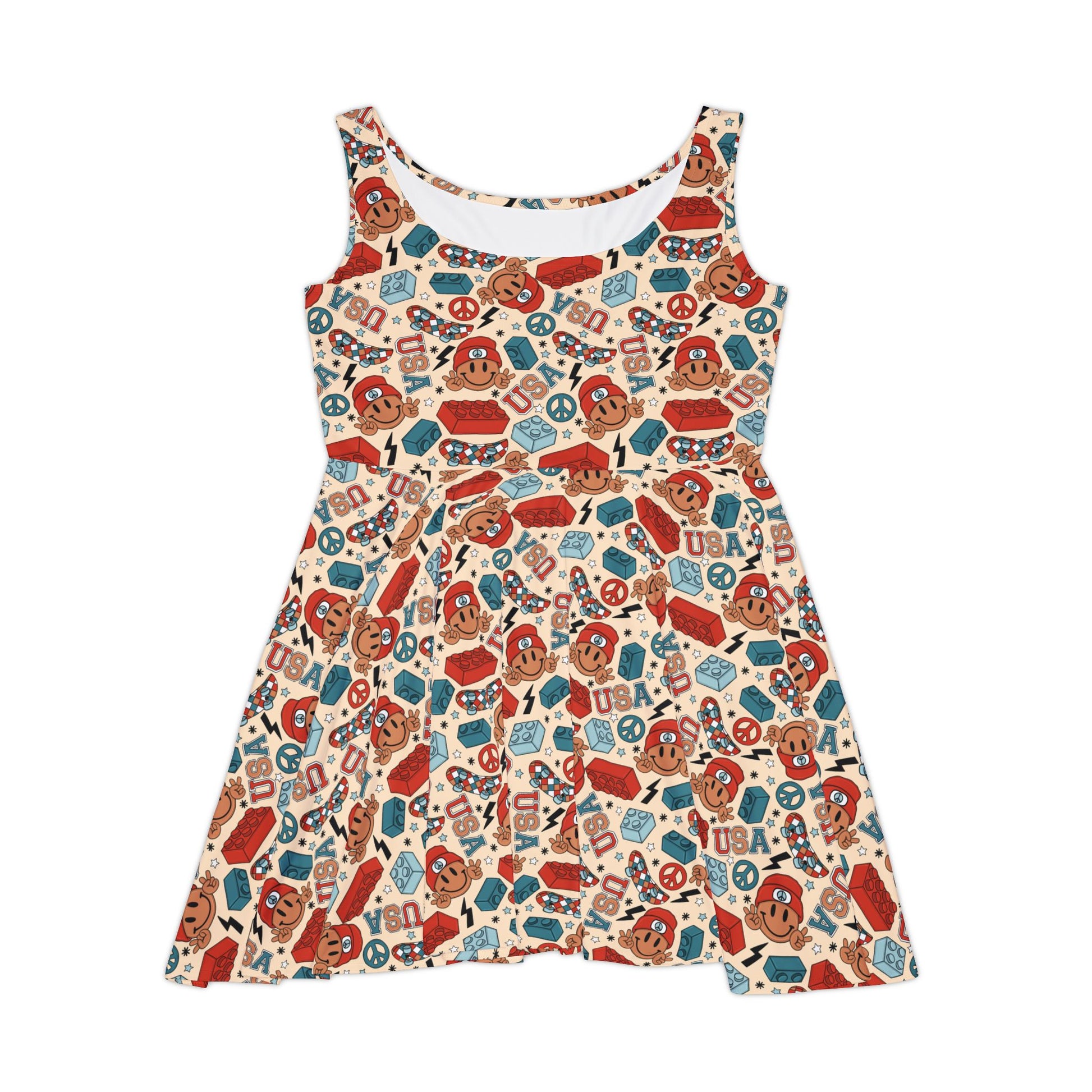 Bring a bold, patriotic vibe to your wardrobe with this USA-inspired skater dress. Whether you're hitting the town or lounging in style, this skater dress combines comfort and flair. Crafted from a high-quality 290gsm fabric blend of 83% polyester and 17% spandex, it's both stretchy and soft, making it perfect for any occasion. Featuring vibrant USA flag motifs in an all-over print, this mid-length dress is a standout piece for celebrations like the 4th of July or Labor Day, or simply for expressing your love for the red, white, and blue all summer long.