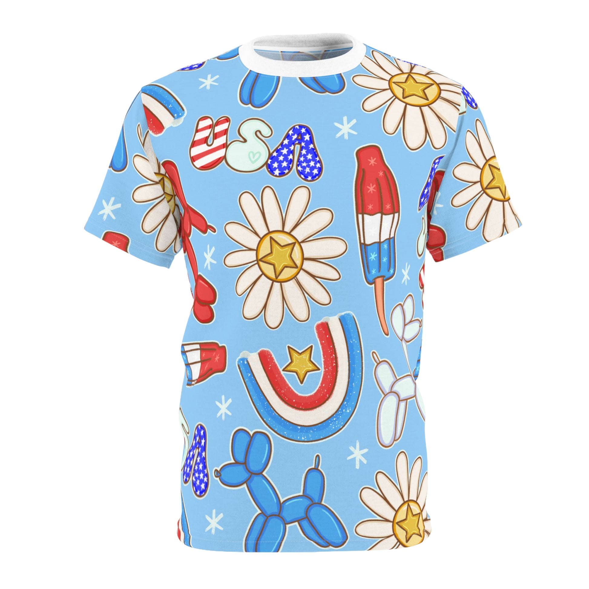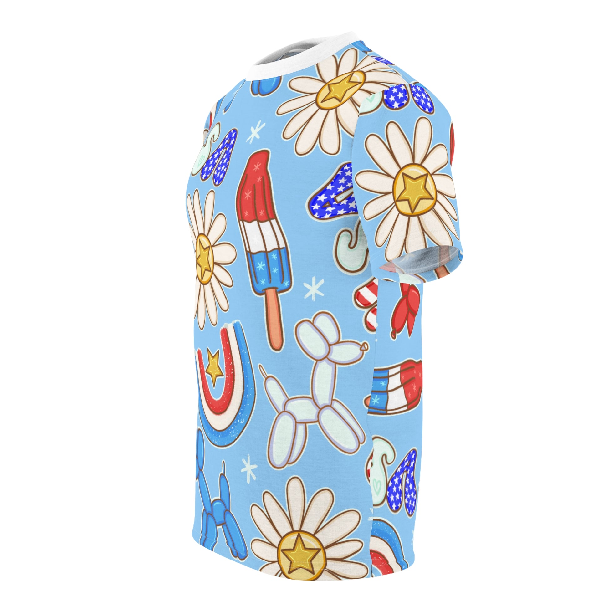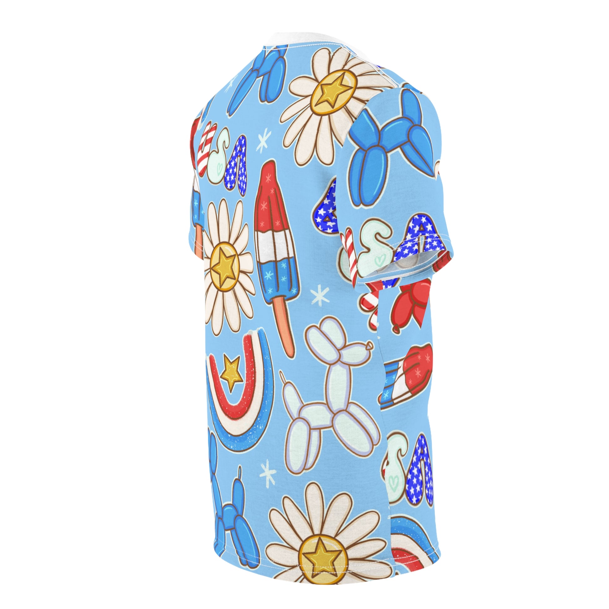 Assembled right here in the USA from globally sourced parts, this tee is all about rocking your American pride in a fresh, modern way. Whether you’re catching some rays, chilling at a BBQ, or just vibing with the red, white, and blue, this tee has got you covered- style, comfort, and coolness all in one.