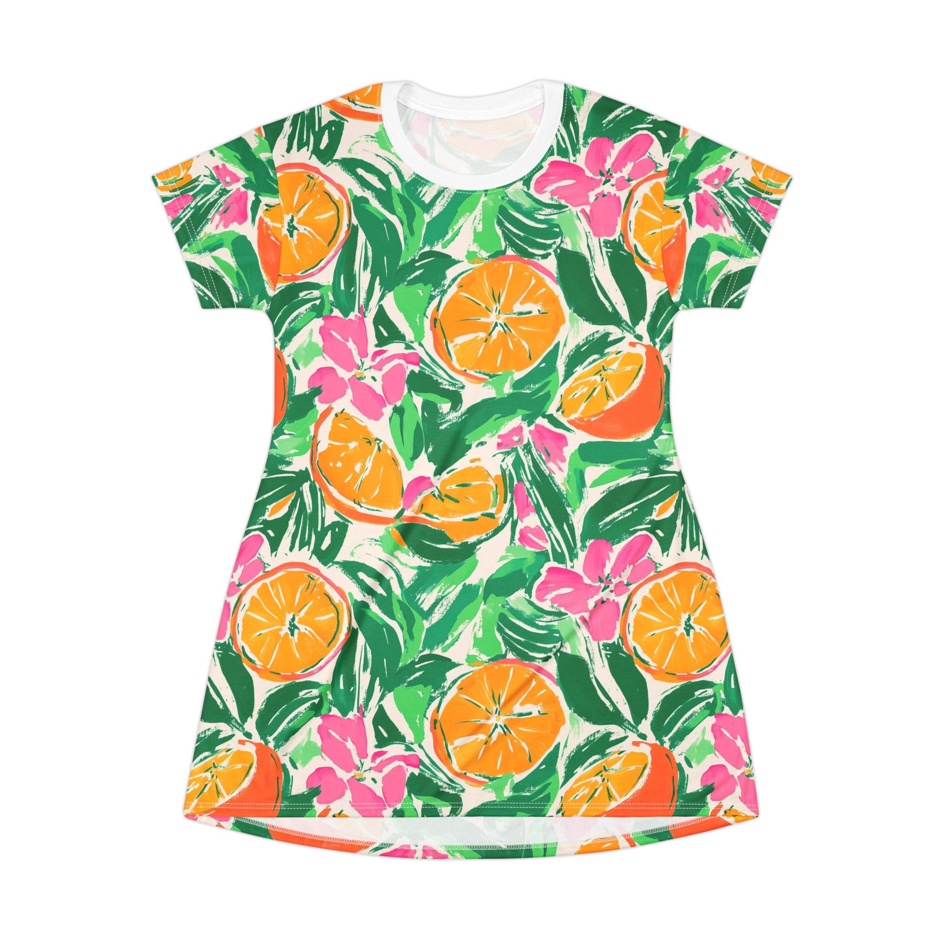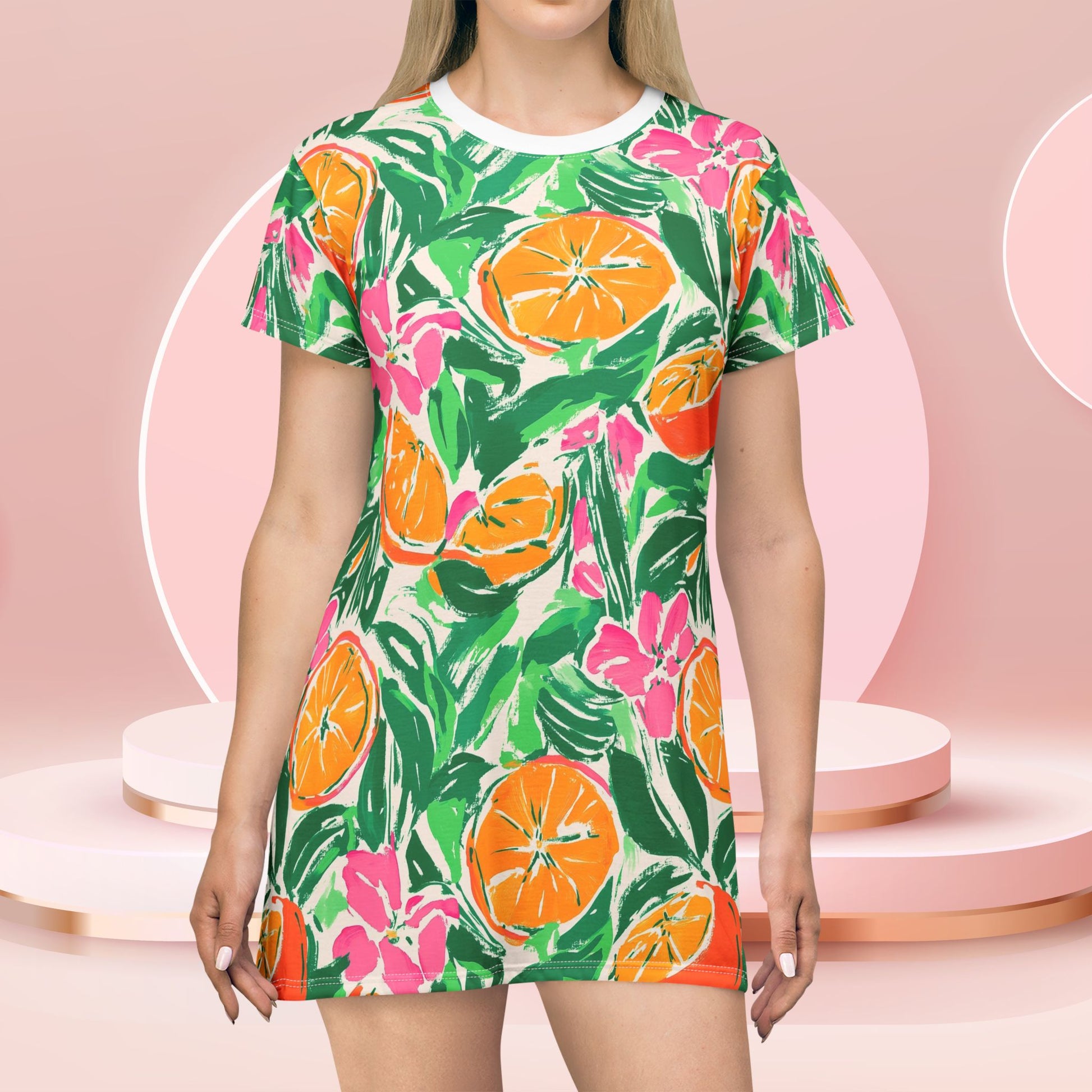 Get ready to bring the sunshine wherever you go with our All-Over-Print T-Shirt Dress featuring fun Florida-inspired designs! This isn’t just any dress- it’s a burst of tropical vibes and laid-back style, perfect for making a statement whether you're hitting the beach or just soaking up the good vibes around town.
