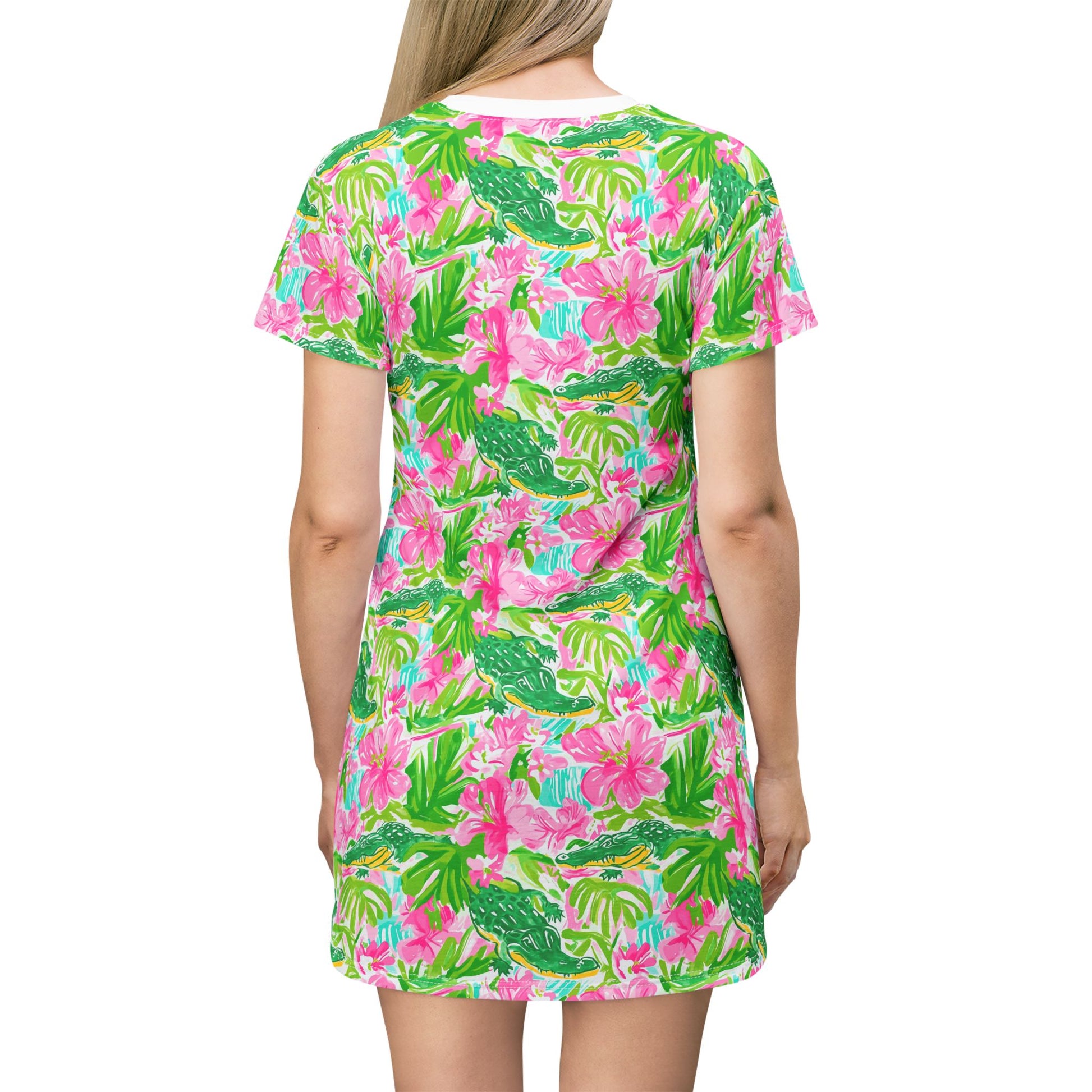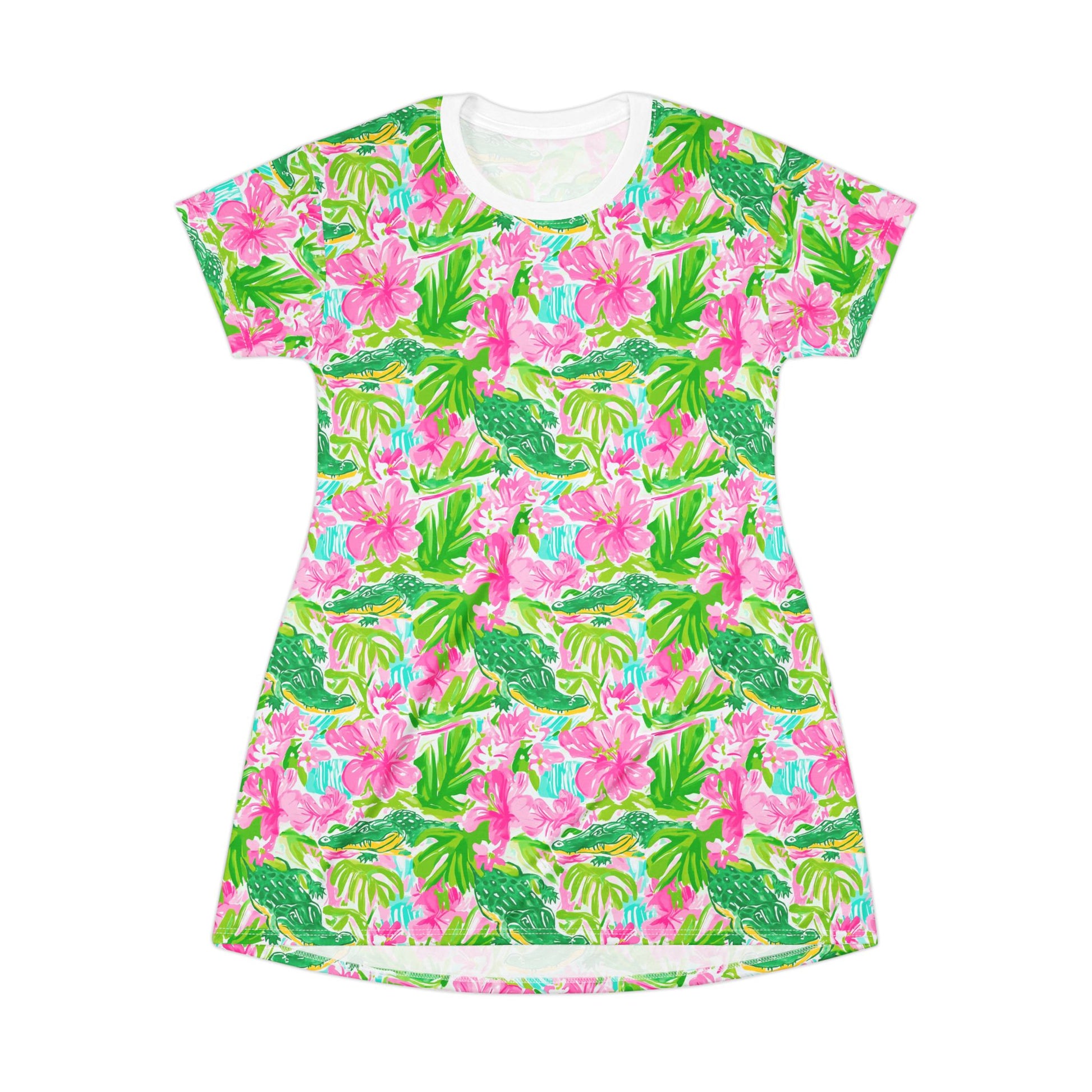 Get ready to bring the sunshine wherever you go with our All-Over-Print T-Shirt Dress featuring fun Florida-inspired designs! This isn’t just any dress- it’s a burst of tropical vibes and laid-back style, perfect for making a statement whether you're hitting the beach or just soaking up the good vibes around town.
