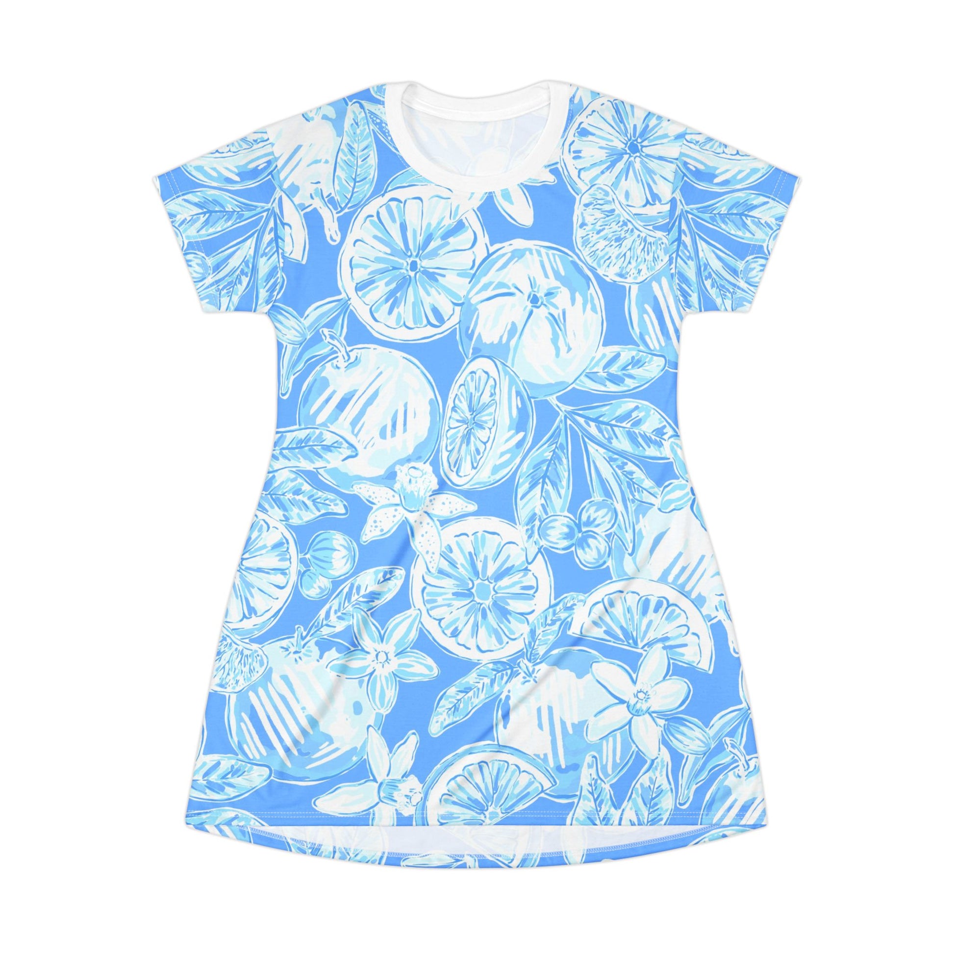 Get ready to bring the sunshine wherever you go with our All-Over-Print T-Shirt Dress featuring fun Florida-inspired designs! This isn’t just any dress- it’s a burst of tropical vibes and laid-back style, perfect for making a statement whether you're hitting the beach or just soaking up the good vibes around town.